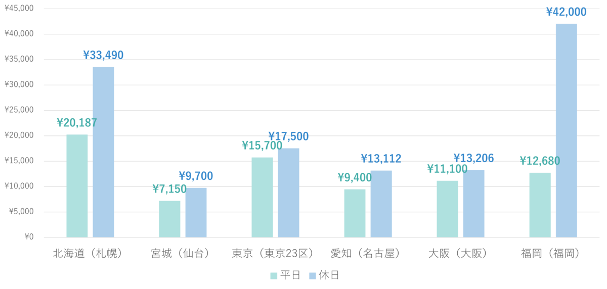 - 東京や大阪のにおける平日と休日の価格差は、それほど大きくありません。これは引き続きインバウンド旅行者の影響により、平日の価格が高まっているためです。