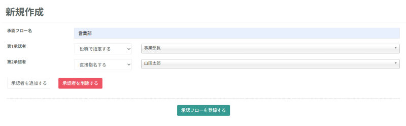 (3)貴社の運用に合わせて承認フローを作成し「承認フローを登録する」をクリック