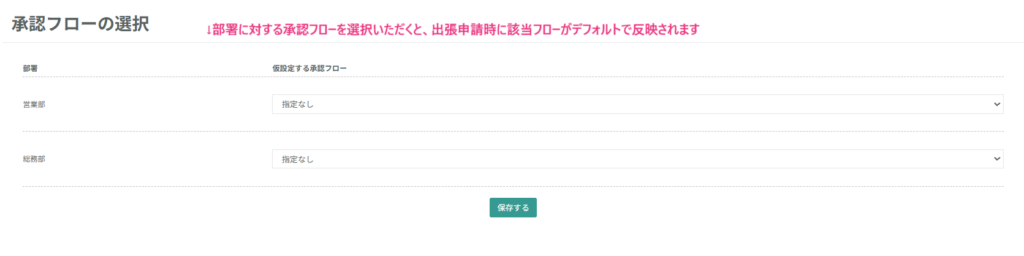 部署に対する承認フローのデフォルト設定が可能です。